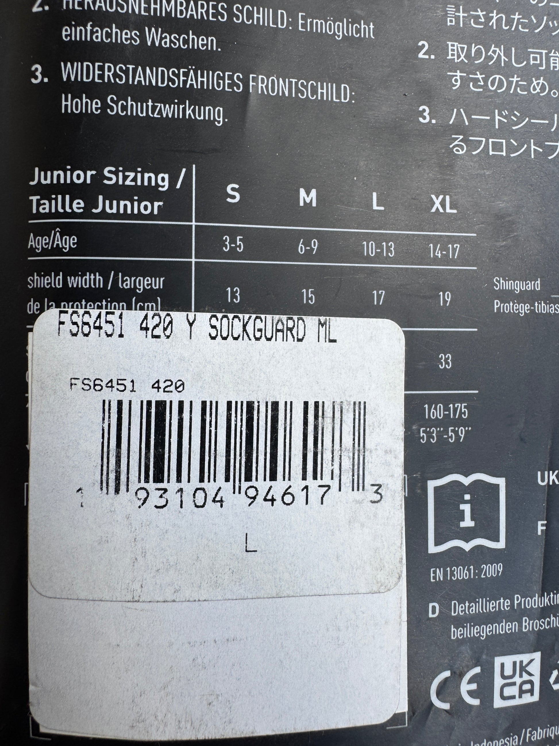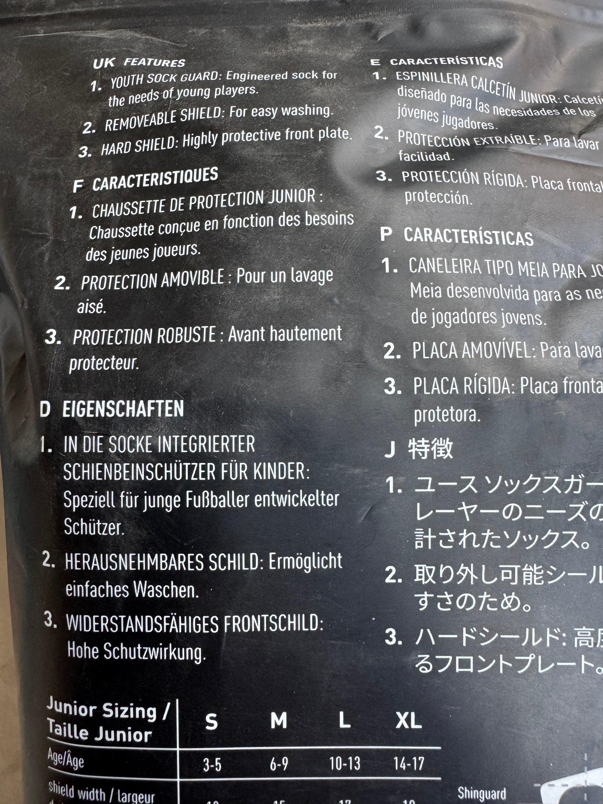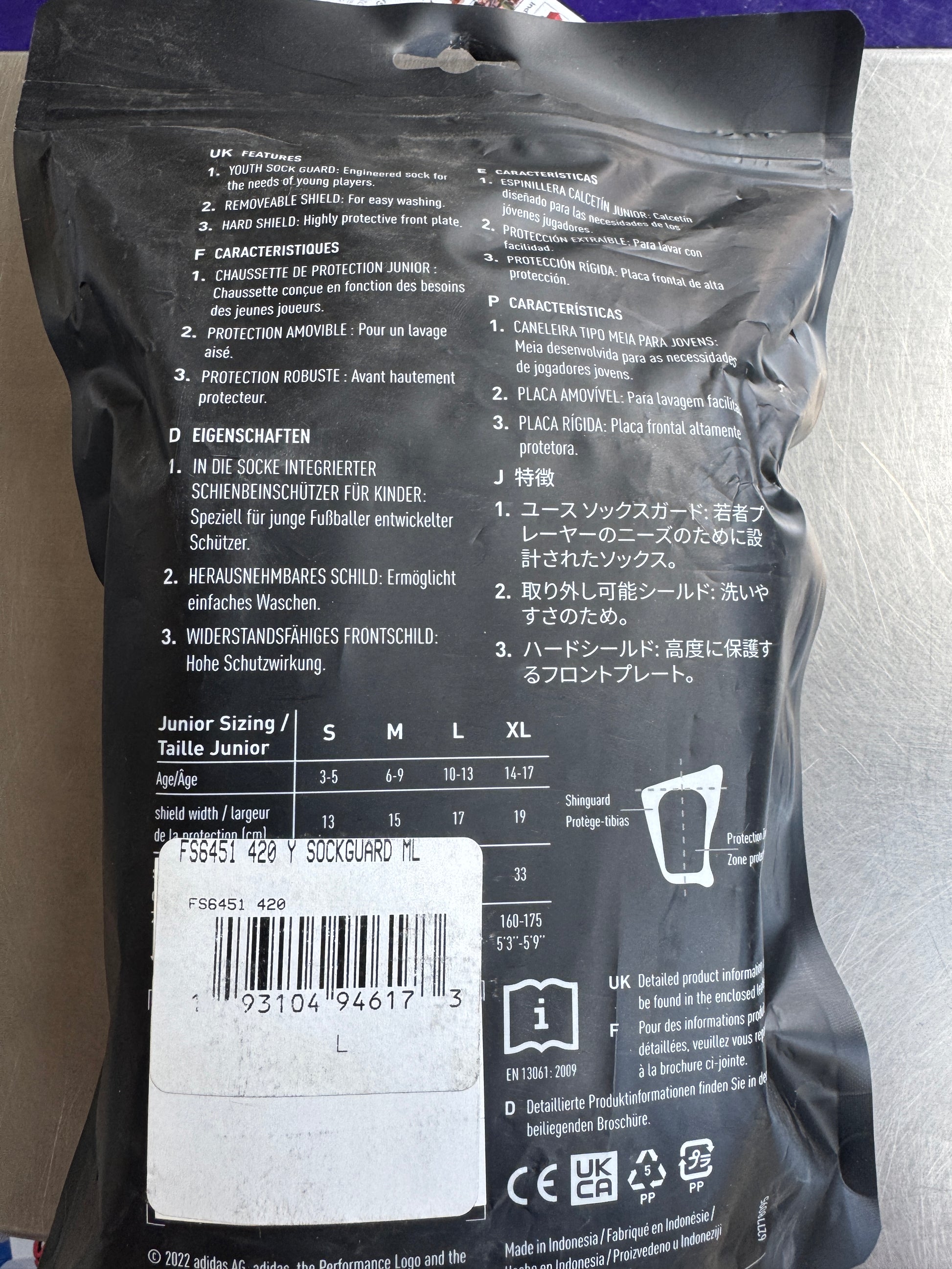 The Adidas MLS Football Youth Sock Shin Guards in size Large and color black are designed for football and soccer players of all positions. These guards by Adidas feature a highly protective front plate, a removable shield, and foldable design for easy storage and transport. They are adjustable and breathable, making them suitable for unisex kids playing sports. Perfect for young athletes looking to stay safe during games and training sessions.